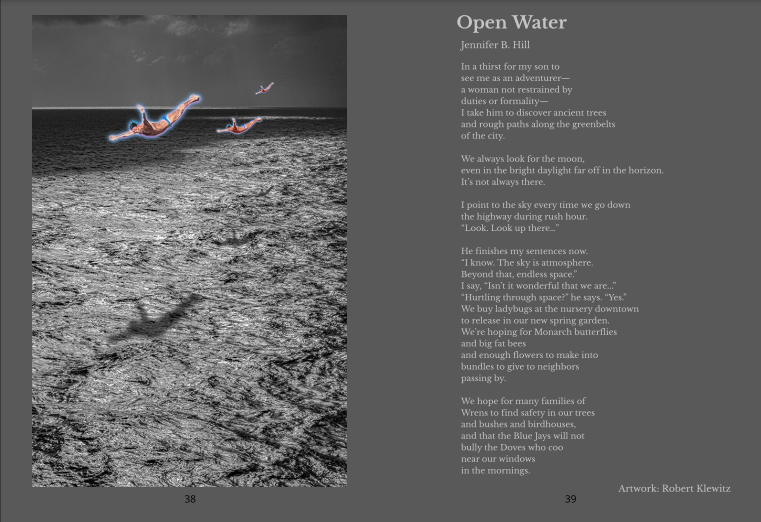 September 16, 2021August 22, 2023 Jennifer Hill-Flores Open Water (Poem) This poem first appears in the October 2021 issue of Beyond Words Literary Magazine. Share this: Click to share on Facebook (Opens in new window) Facebook Click to share on X (Opens in new window) X Like Loading... Related
